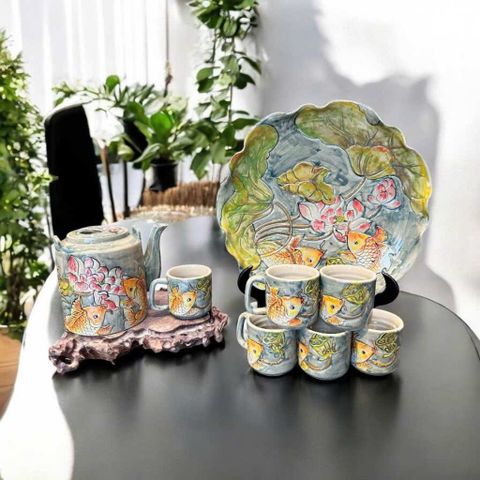 Bộ sản phẩm không chỉ mang giá trị sử dụng mà còn là tác phẩm nghệ thuật thủ công độc đáo, làm bừng sáng mọi không gian từ phòng khách, phòng trà đến văn phòng làm việc.