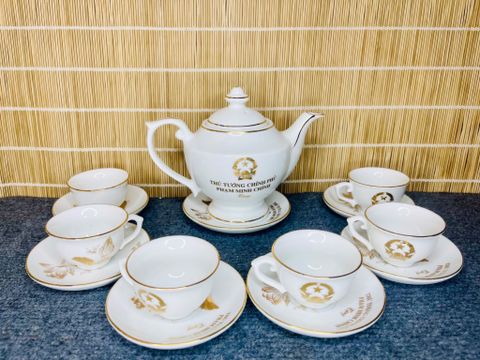 Bộ ấm chén men ngọc in logo Quốc Huy và Thủ tướng Chính phủ Phạm Minh Chính là dòng sản phẩm quà tặng cao cấp, mang giá trị biểu tượng và văn hóa sâu sắc. Đây là lựa chọn tinh tế cho các dịp lễ quan trọng, hội nghị cấp cao hoặc biếu tặng người có địa vị, thể hiện sự trân trọng và tôn vinh.