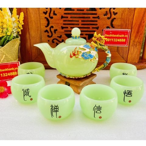 Bộ Ấm Chén Đá Ngọc Pakistan Xanh Ngọc – Quà Tặng Sang Trọng, Phong Thủy May Mắn